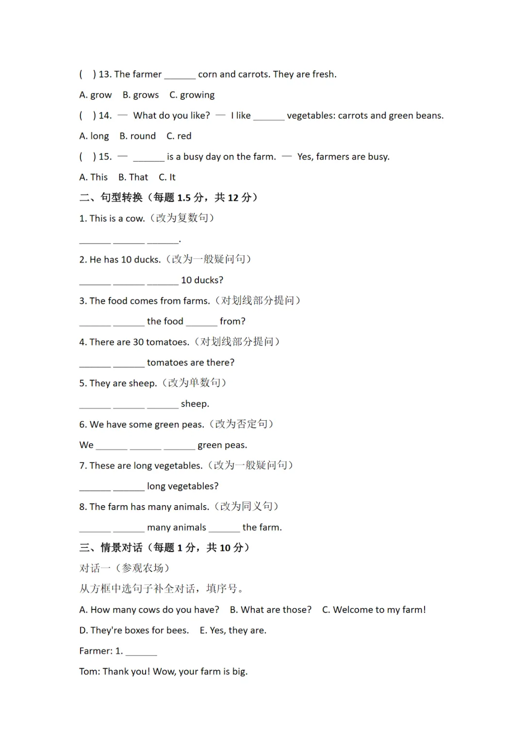 【免费下载】四年级(下)英语 26春Unit 5 练习卷《人教版PEP》,PDF电子版,共16页,可打印