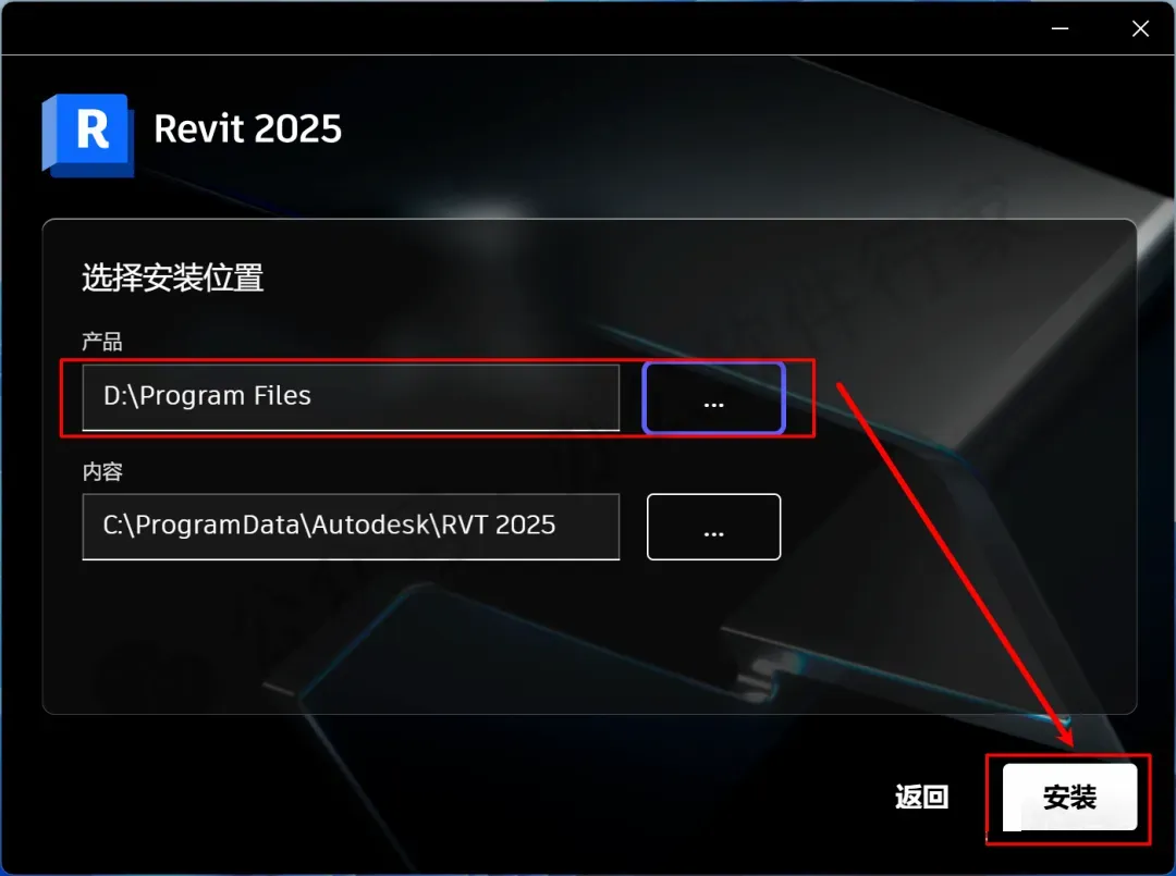 4、选择软件安装路径,建议和教程中的保持一致,本例安装在D盘(将路径地址中的首字符C改为D表示安装到D盘,或者可以在其它磁盘里创建一个新的文件夹,安装路径不要出现中文),点击“安装”