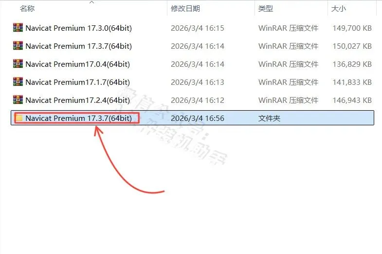 2.打开解压的【Navicat Premium 17.3.7(64bit)】文件夹。