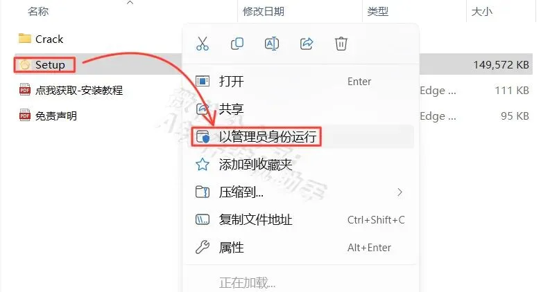 3.鼠标右击【setup】,选择【以管理员身份运行】。