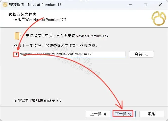 6.修改路径地址中的首字符C可更改安装位置(如:把C改为D软件将安装到D盘),点击【下一步】。