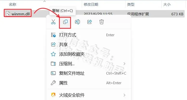 12.鼠标右击【winmm.dll】,选择【复制】。