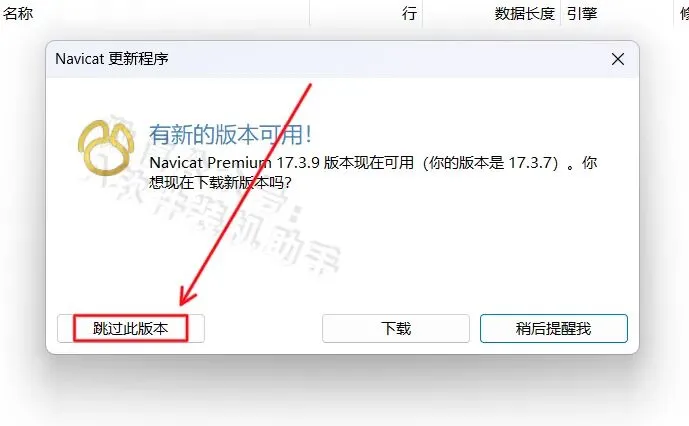 16.点击【跳过此版本】(请不要直接在这更新软件,否则无法使用)。
