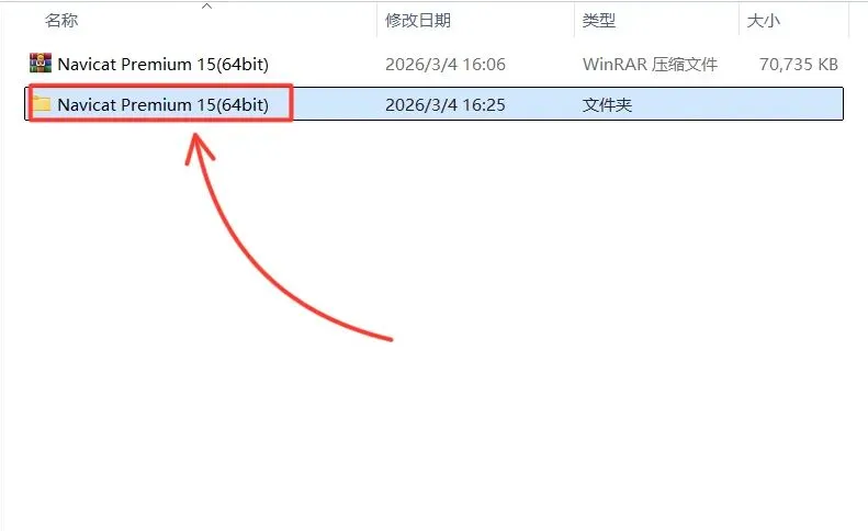 2.打开解压的【Navicat Premium 15(64bit)】文件夹。