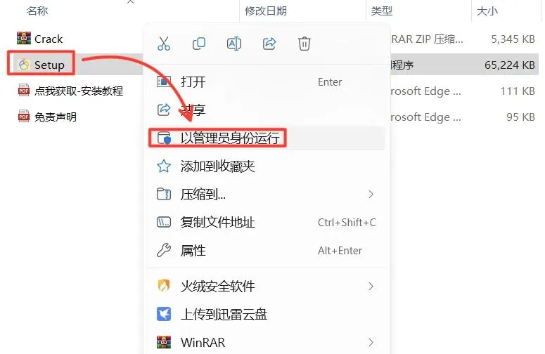 3.鼠标右击【setup】,选择【以管理员身份运行】。