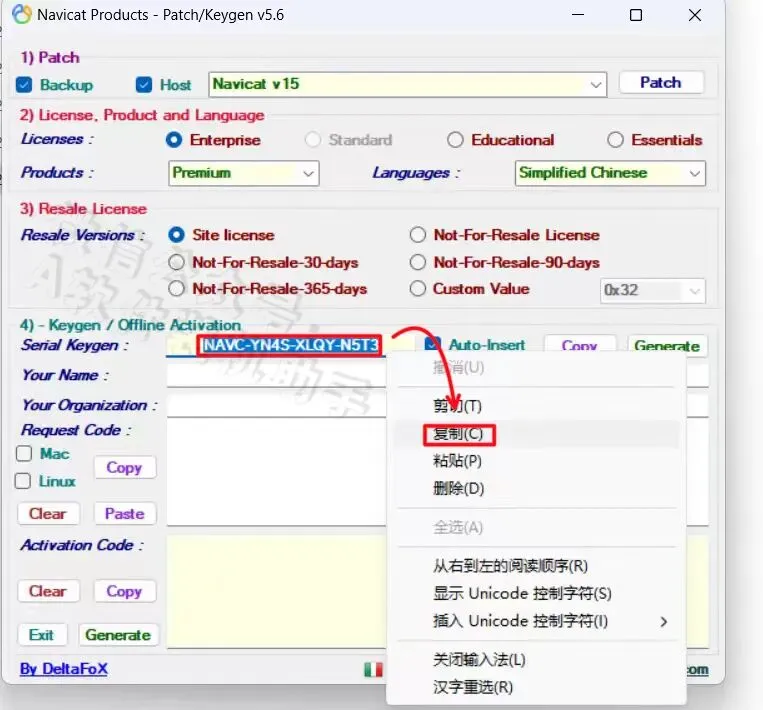 18.选中Serial Keygen后的代码,鼠标右击选择【复制】(不要关闭此窗口继续后面的步骤)。