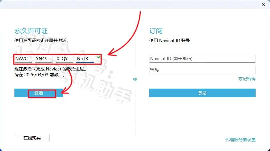 21.将步骤18复制的许可秘钥粘贴到下图所示位置,点击【激活】。