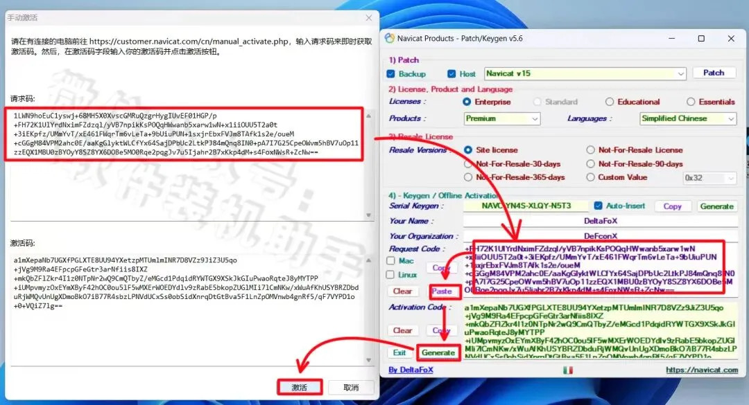 23.全选【请求码】后鼠标右击选择复制,点击【Paste】,点击【Generate】,点击【激活】。