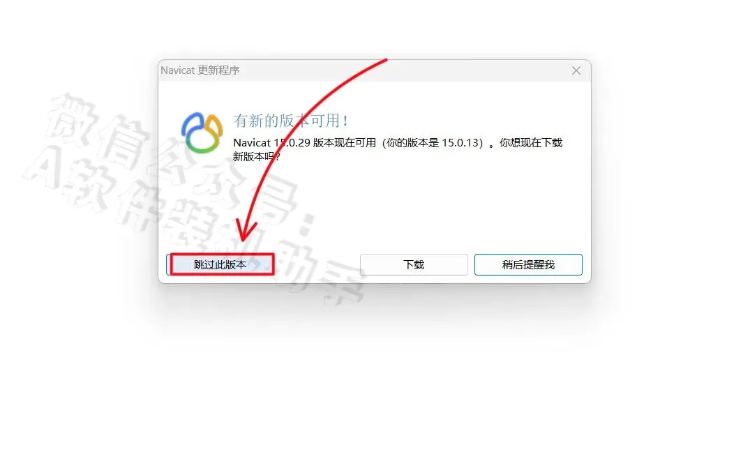 26.点击【跳过此版本】(请不要直接在这更新软件,否则无法使用)。