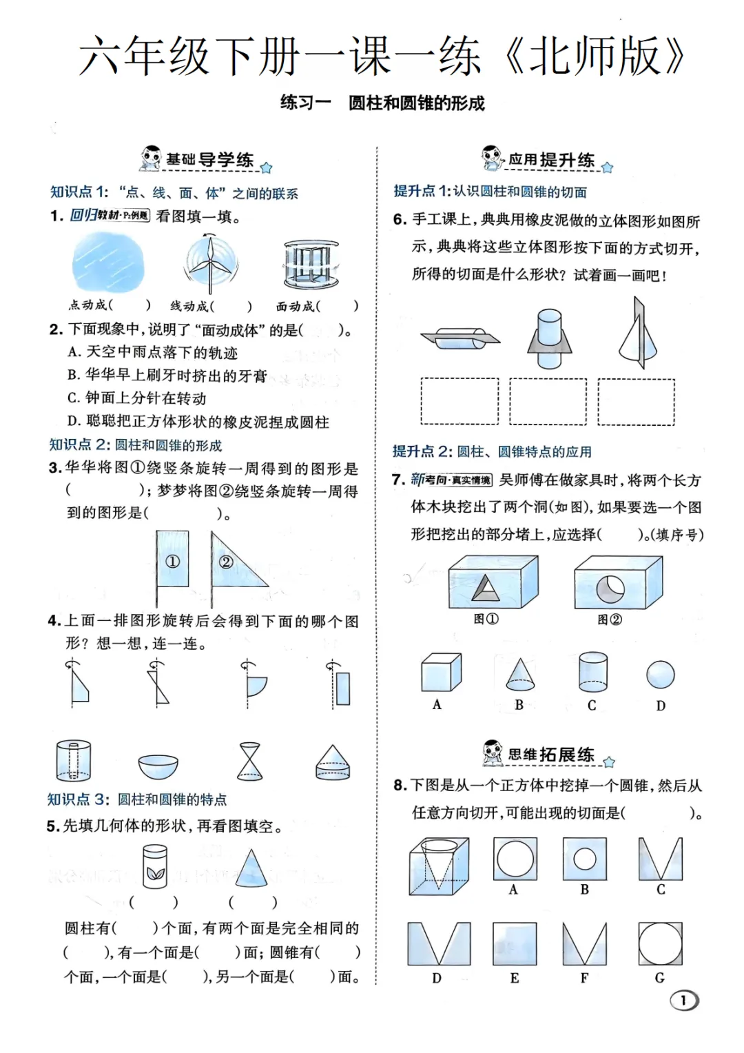 【免费下载】六年级(下)数学 一课一练《北师版》,PDF电子版,共124页,可打印