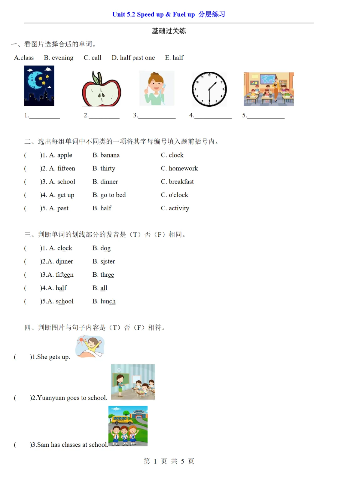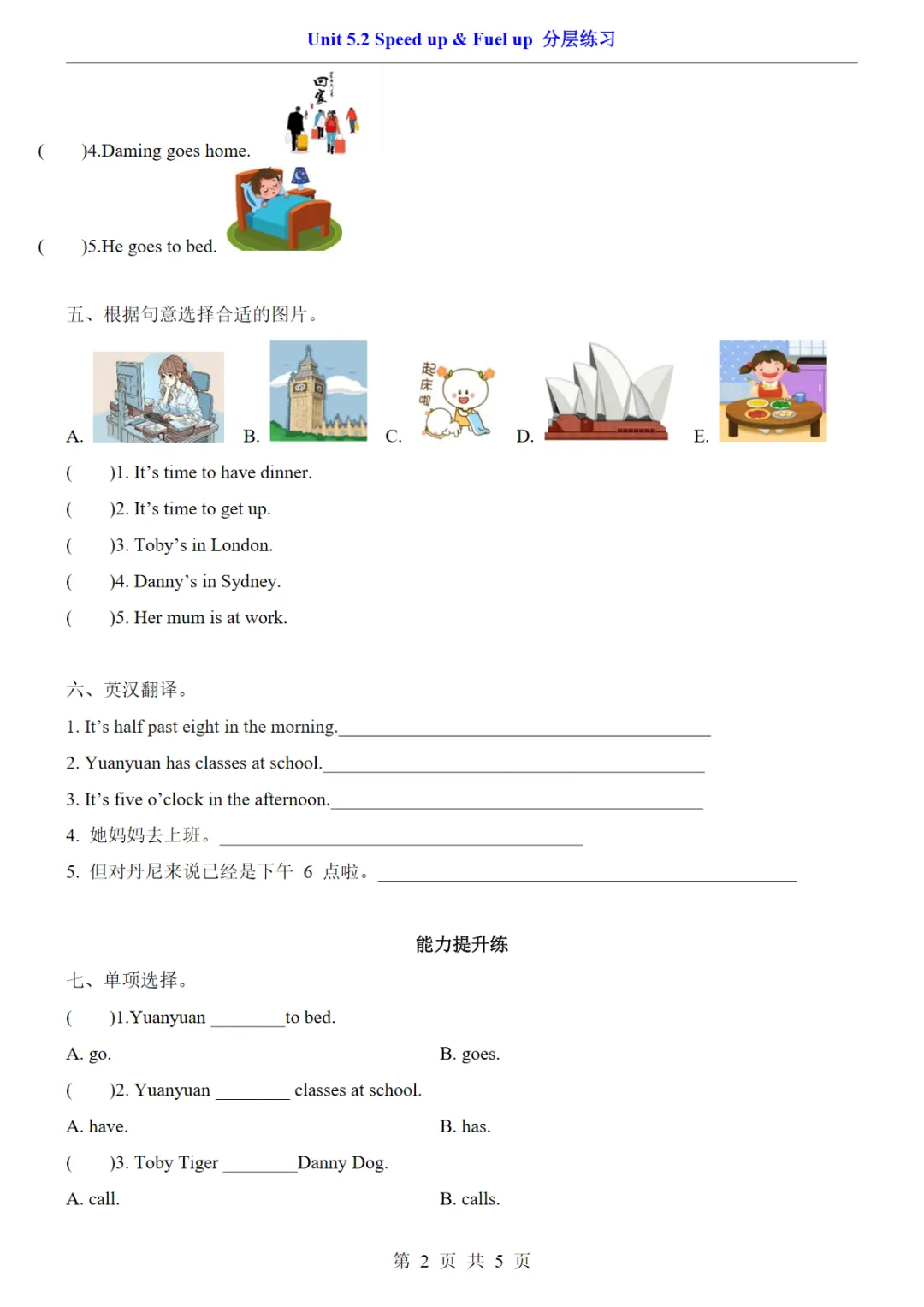 【免费下载】三年级(下)英语 Unit 5.2 Speed up & Fuel up分层练习《外研版(三起)》,PDF电子版,共5页,可打印