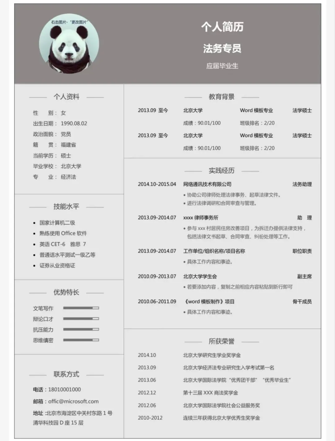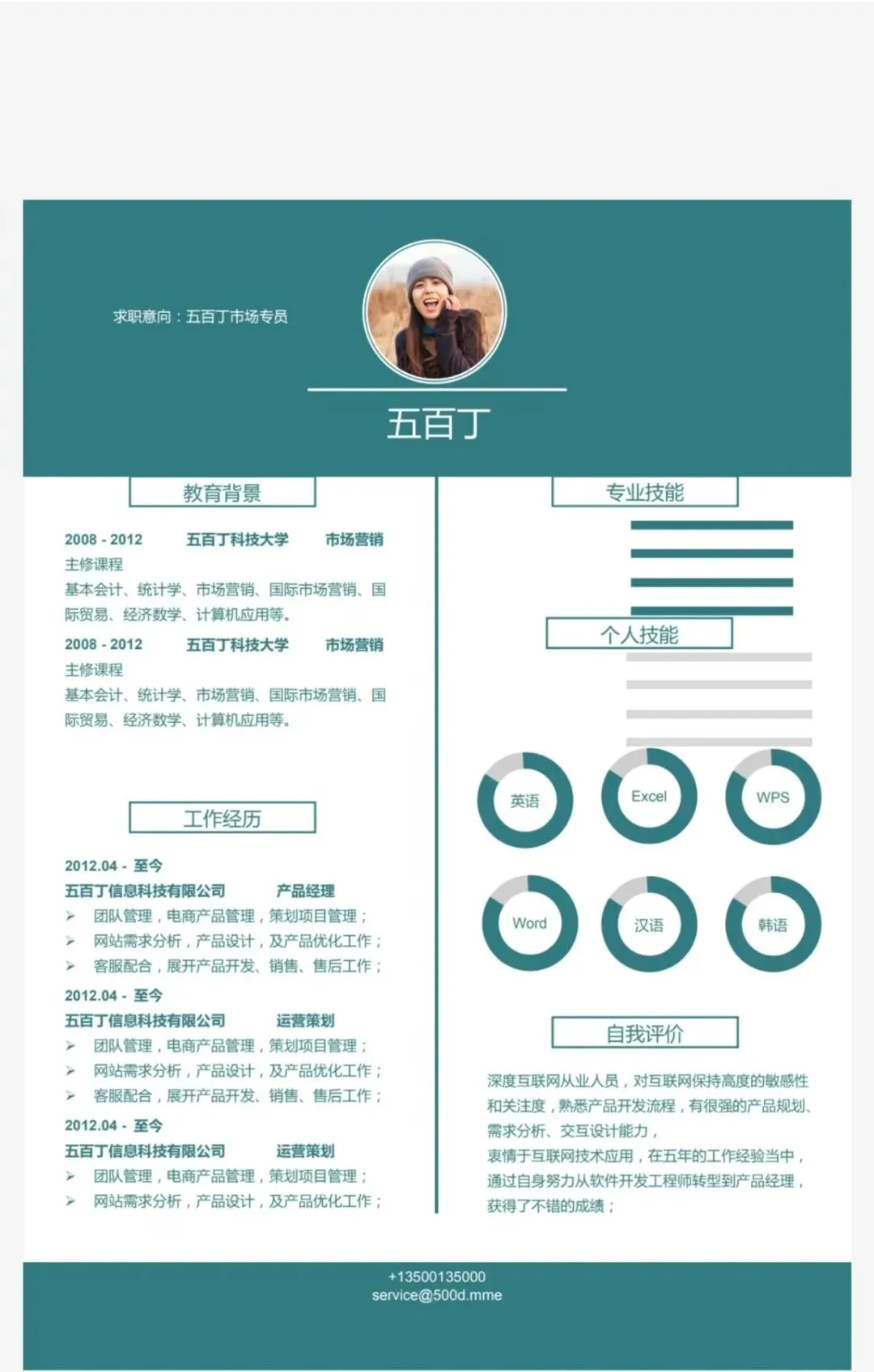 本文分享的是[个人简历模板]