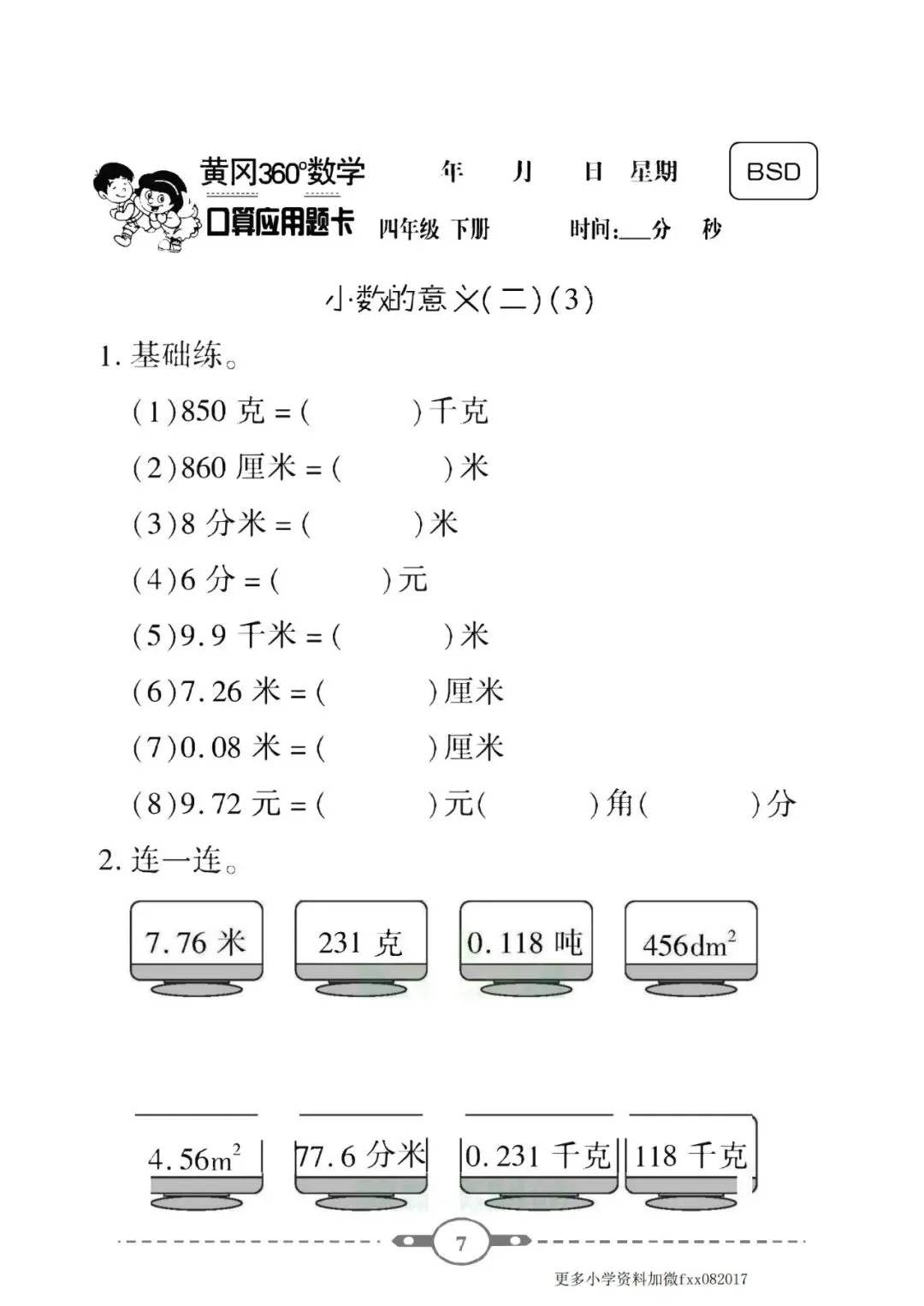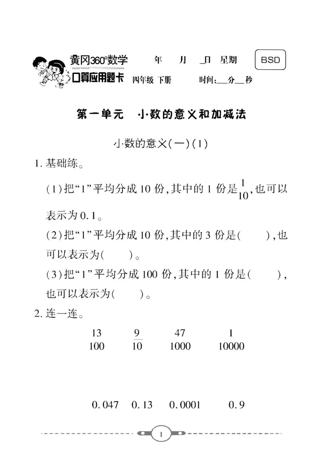 《口算题卡》四年级下册数学北师版需要的家长抓紧打印出来,让孩子练一练吧。