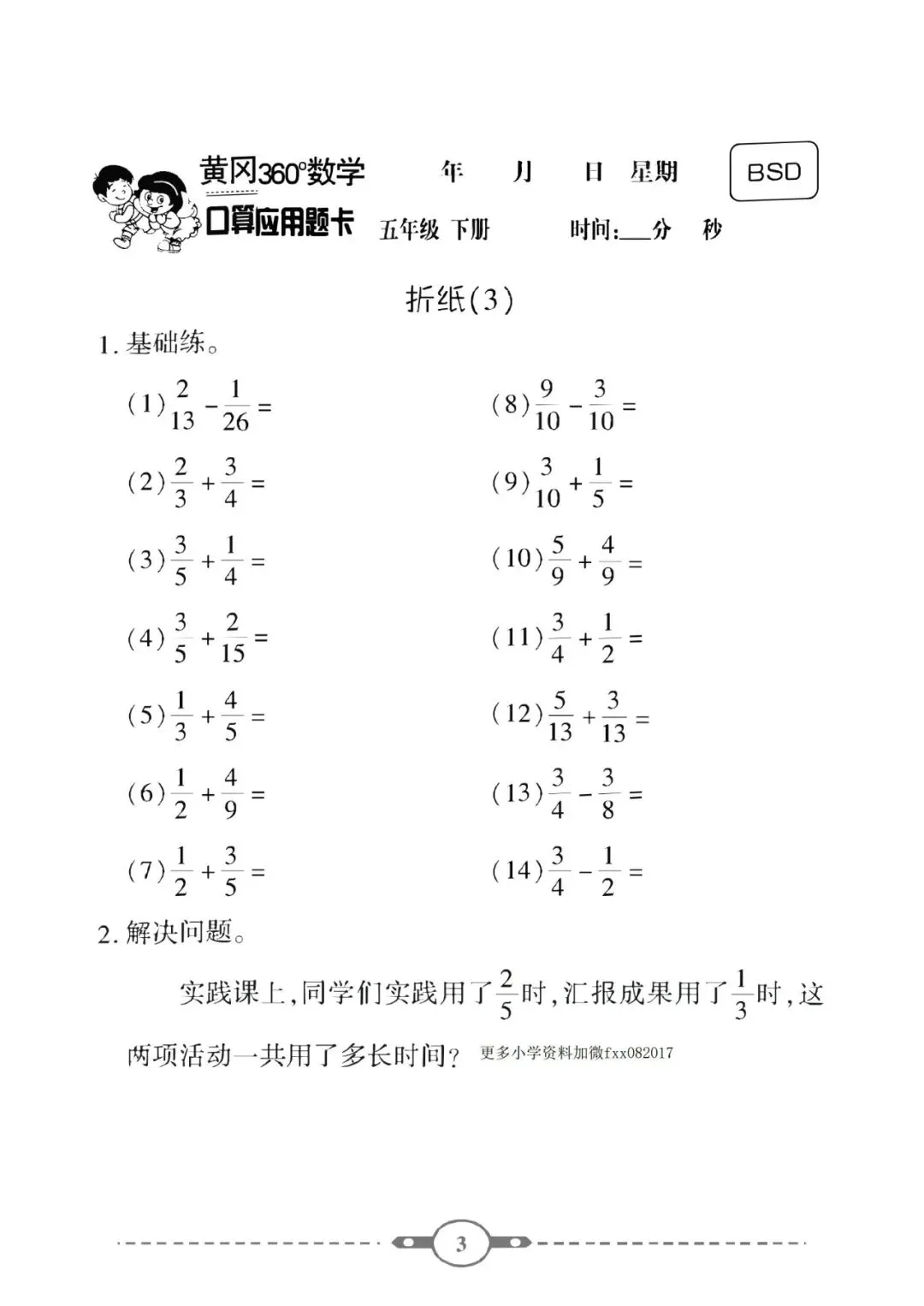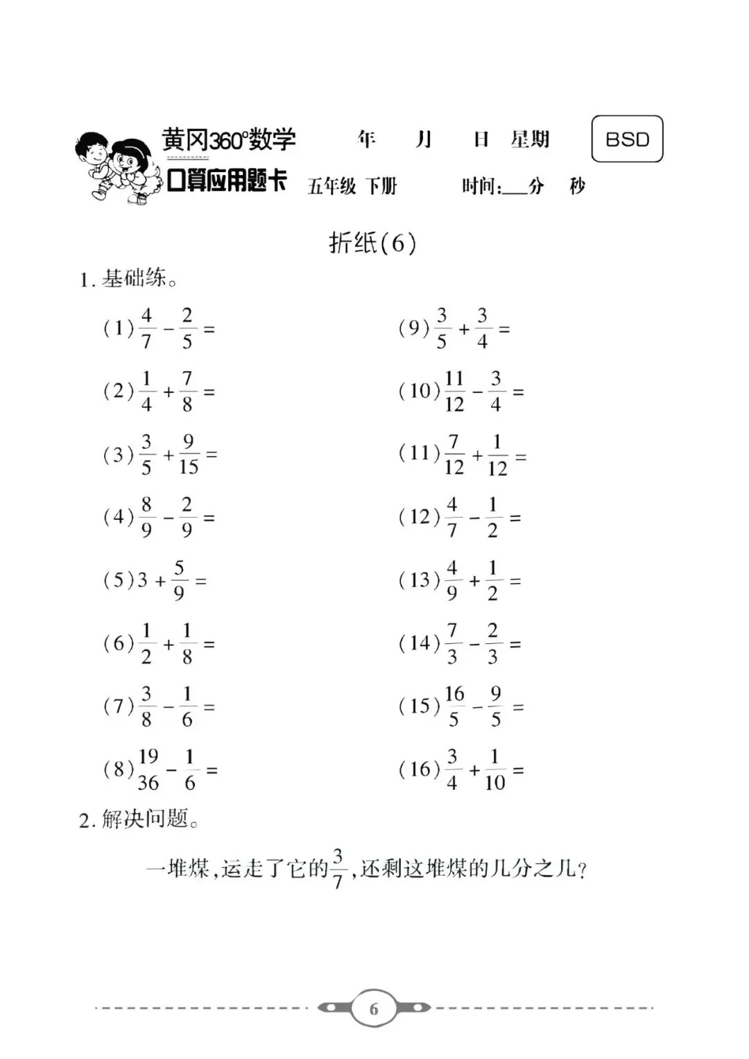 《口算题卡》五年级下册数学北师版