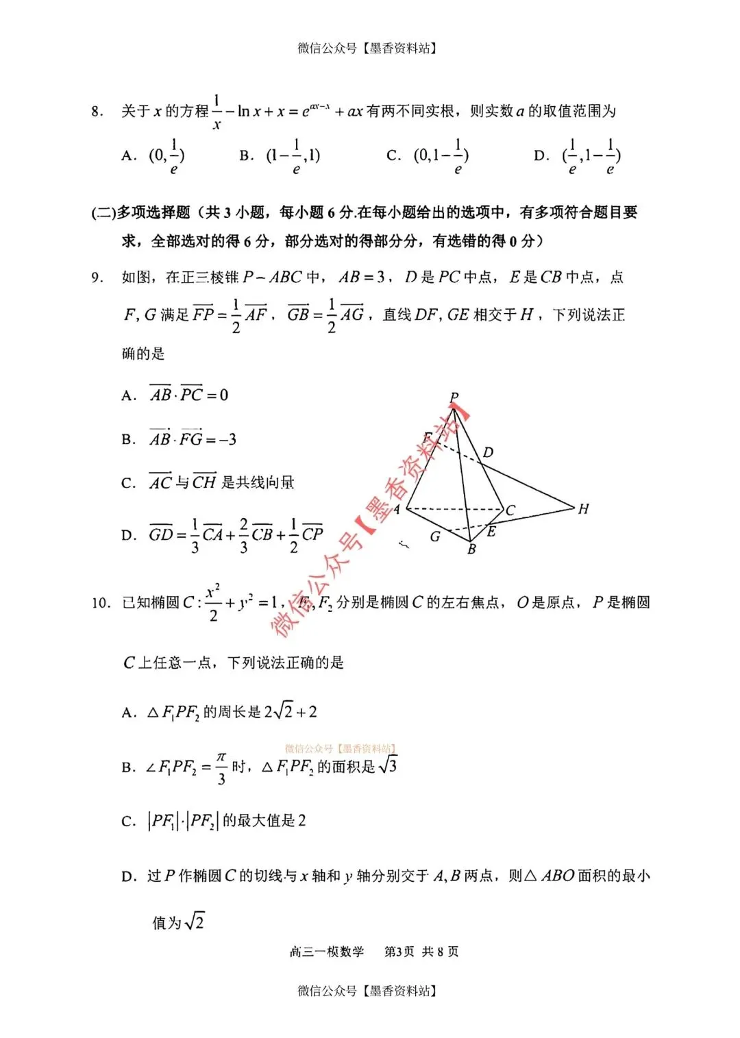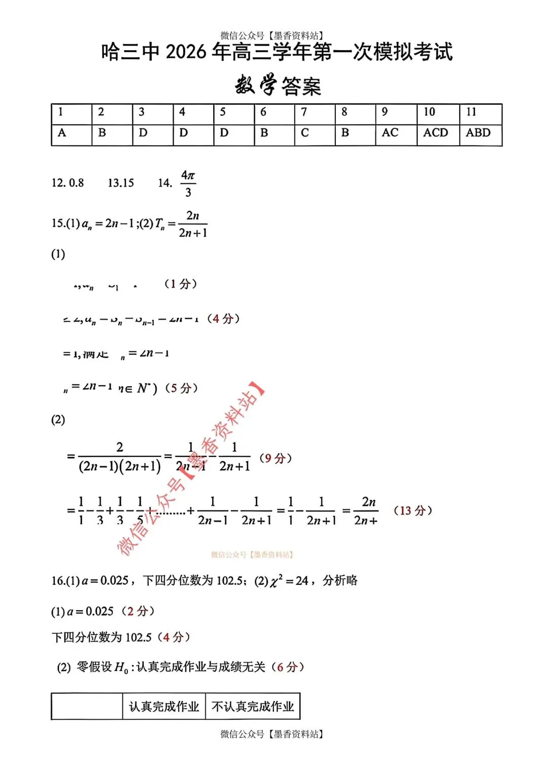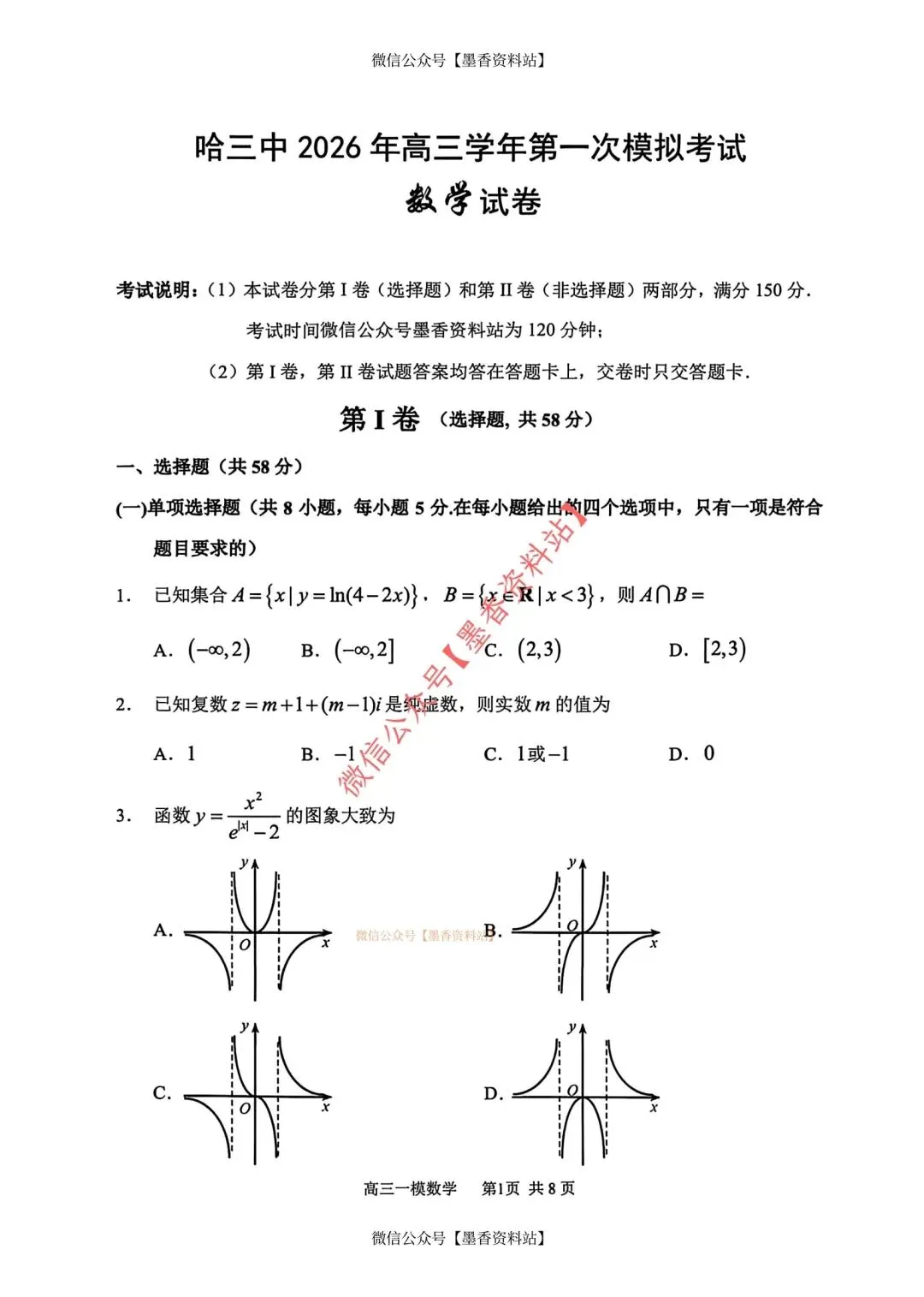 26年3月哈三中高三数学一模试卷+答案(免费下载)