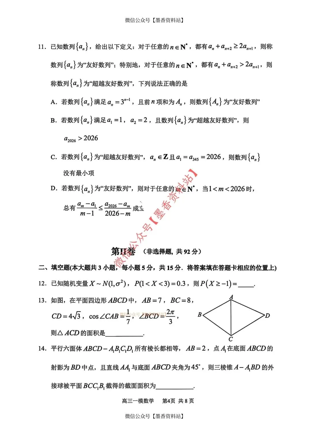 >26年3月哈三中高三数学一模试卷+答案(免费下载)