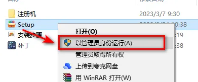 2、选中Setup,鼠标右键选择“以管理员身份运行”