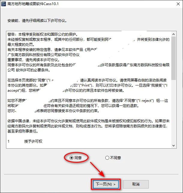 3、选择同意,点击“下一步”