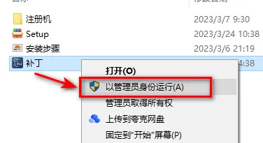 8、选中补丁,鼠标右键选择“以管理员身份运行”