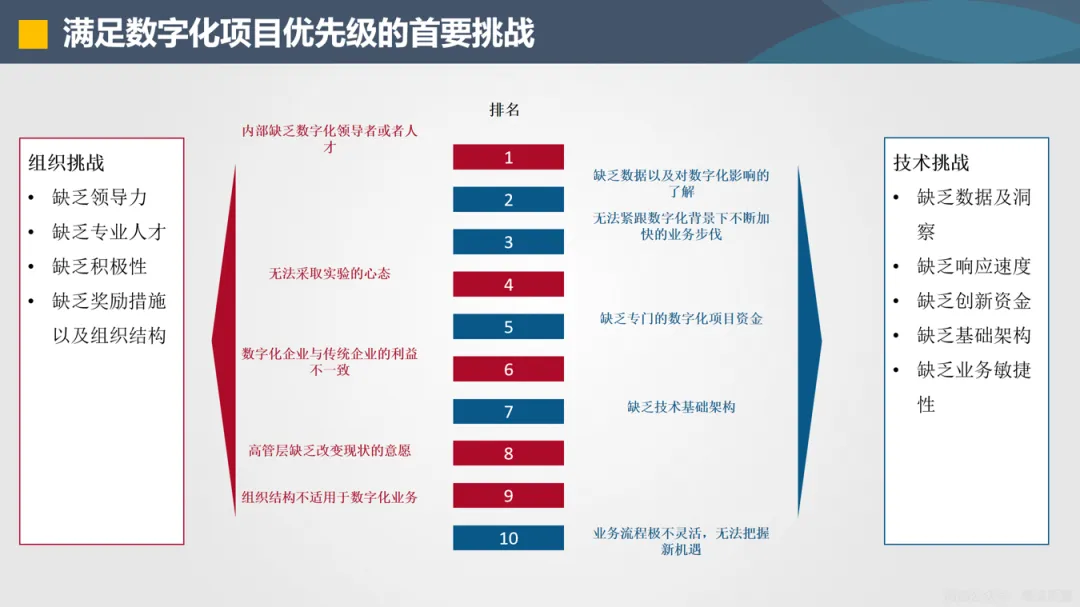 转型有三大驱动因素,核心是提升生产力与盈利能力,同时面临人才缺乏、跨部门协同难、文化转型的挑战。成功转型需把握五大关键要务:一把手推动、以动态客户关系为目标、生态系统赋能、数据为驱动、打造动态组织。数字化规划需坚持 “准而精、需求点组合、速赢落地” 原则,优先实施投资低、价值高的速赢方案,建立转型信心。