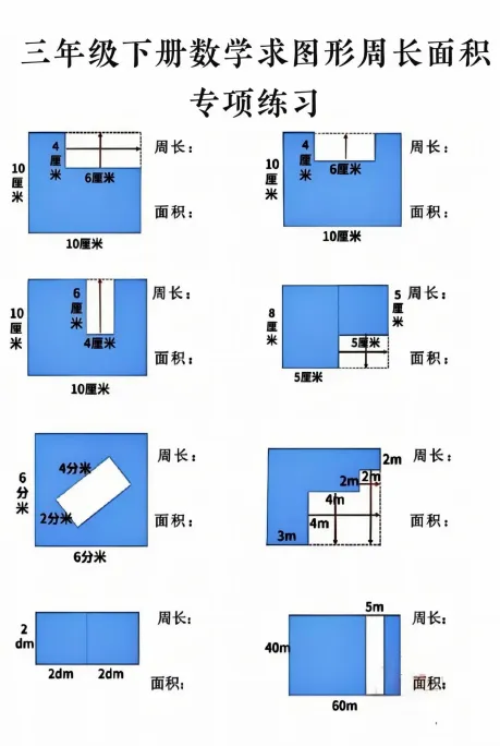 当前位置:首页>免费下载>【免费下载】三年级(下)数学 求周长面积专项练习,PDF电子版,可打印