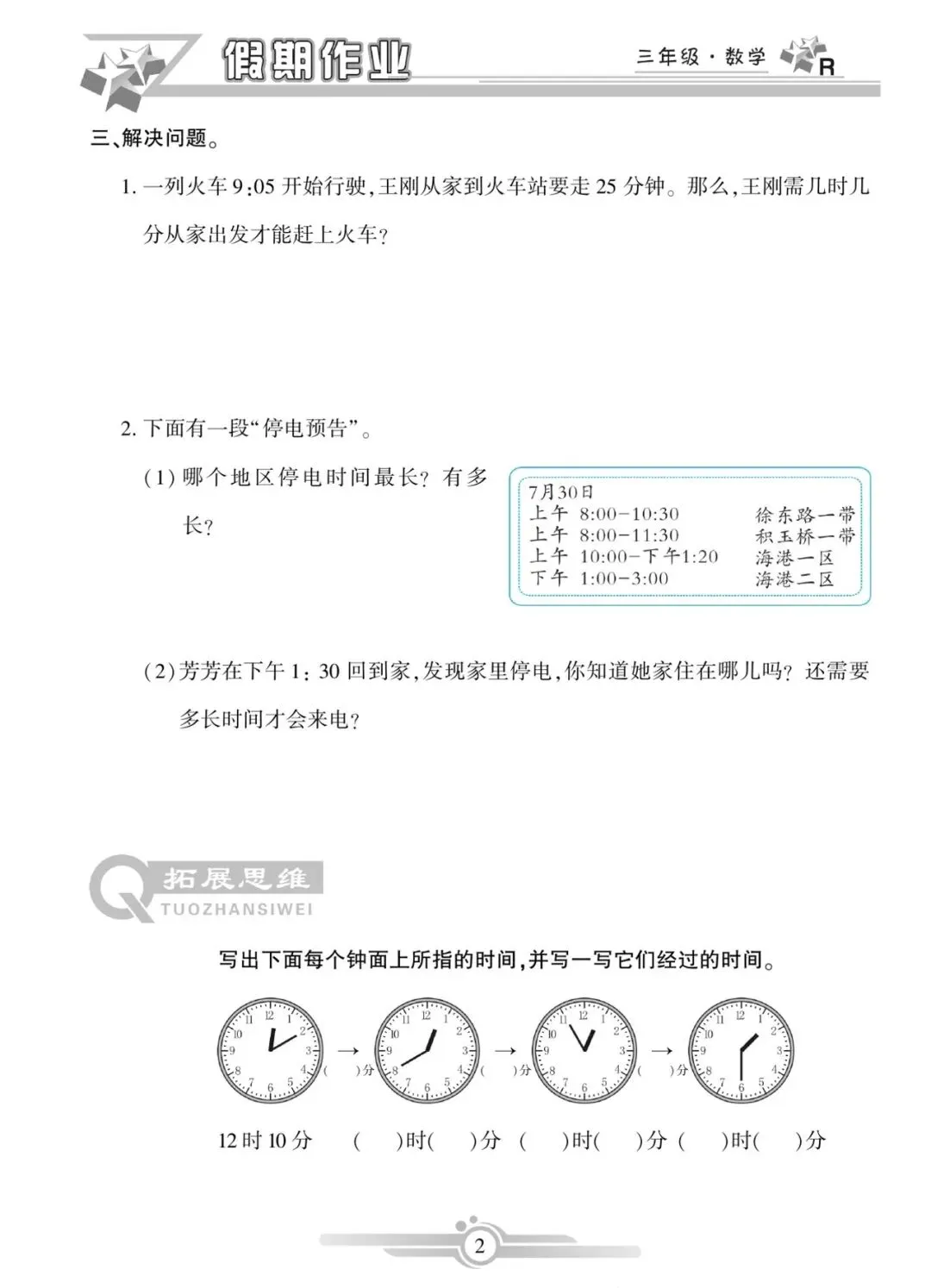 【免费下载】三年级(下)数学 寒假天天练,PDF电子版,共46页,可打印
