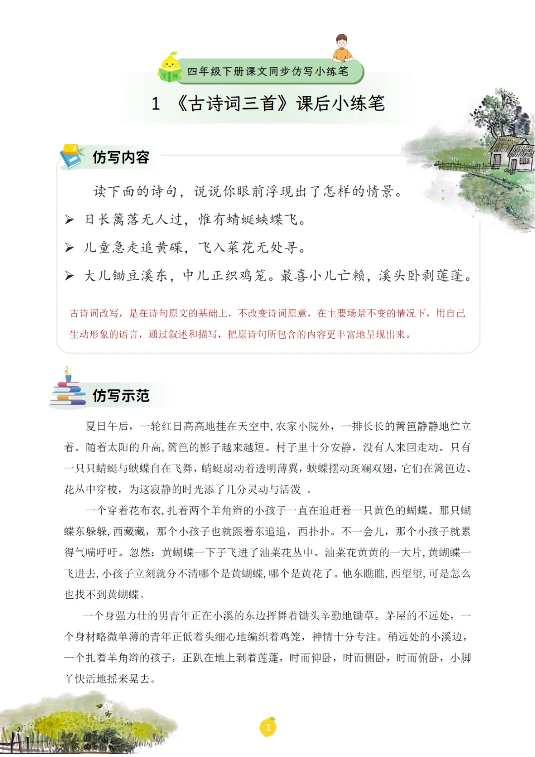 【免费下载】四年级(下)语文 课文仿写小练笔,PDF电子版,共87页,可打印