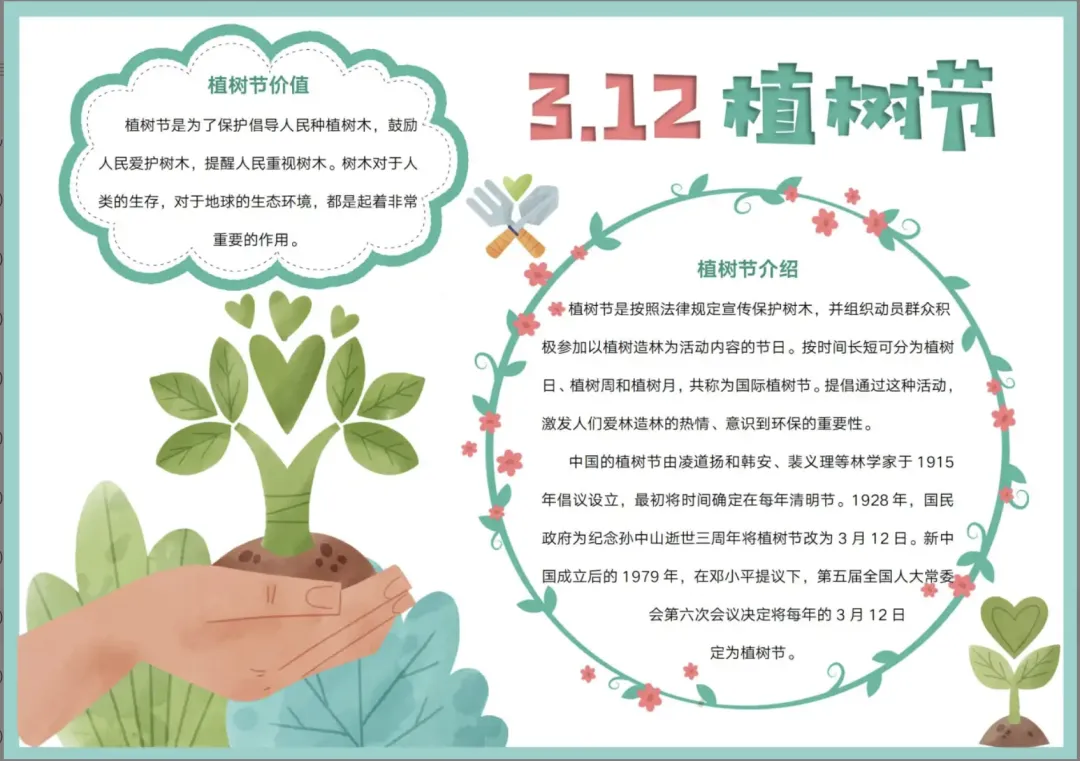 《植树节手抄报+文稿模板》电子版,可免费下载打印(免费分享,可直接打印)