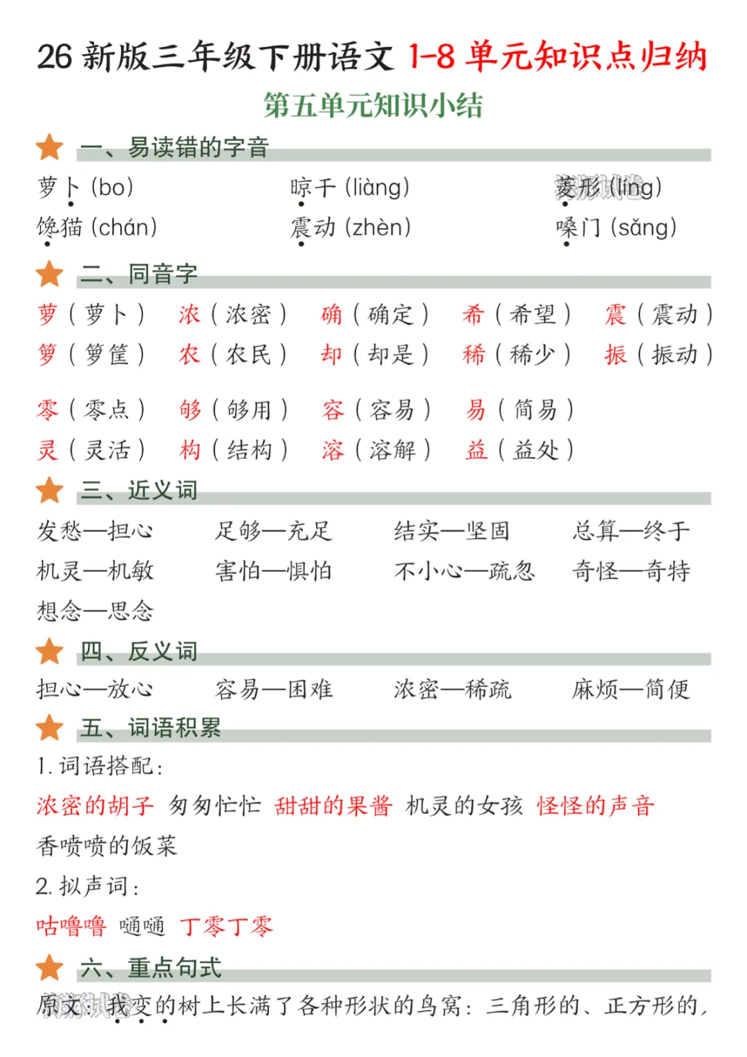 【免费下载】26新三年级(下)语文5-8单元知识点归纳,PDF电子版,共11页,可打印