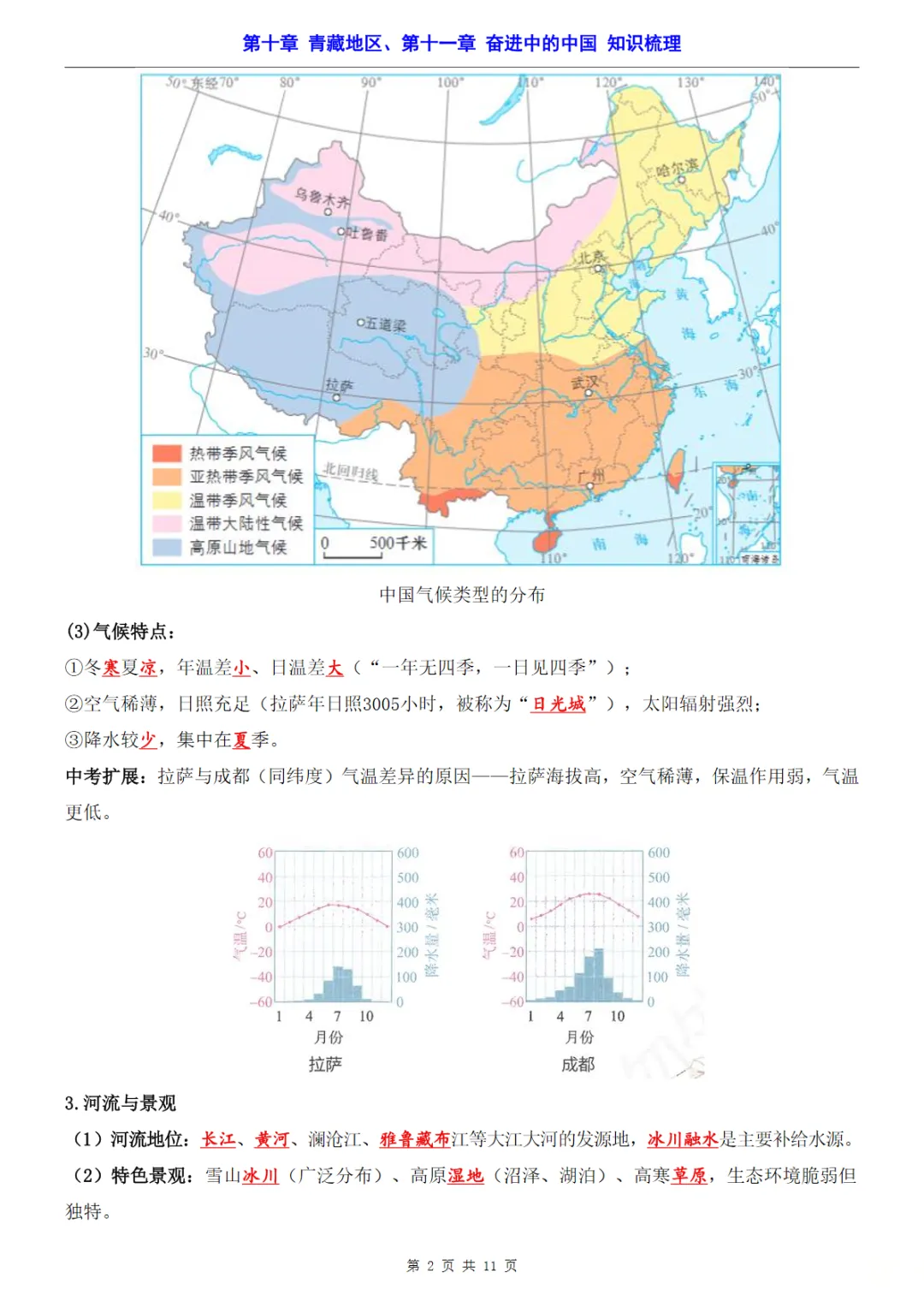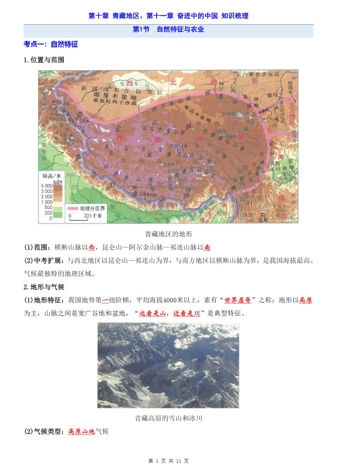 八年级(下)地理第10-11章青藏地区、奋进中的中国 知识梳理(人教版)
