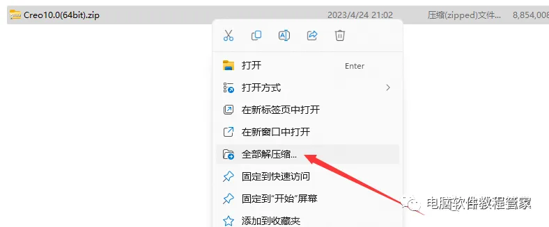 1、下载Creo Parametric 10.0,下载后使用解压软件解压安装包。