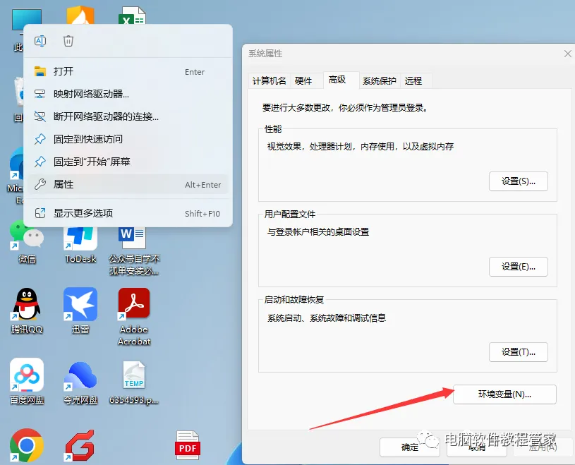 7、此电脑右键属性,打开环境变量。