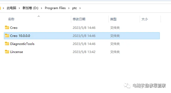 17、到Creo Parametric 10.0安装路径下进行粘贴。(注意在安装路径下Creo 10.0.0.0的上一级文件夹中粘贴)