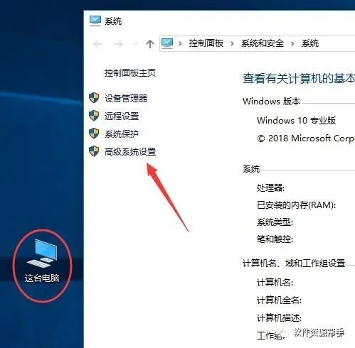 6.选择桌面这台电脑右键属性,点击高级系统设置