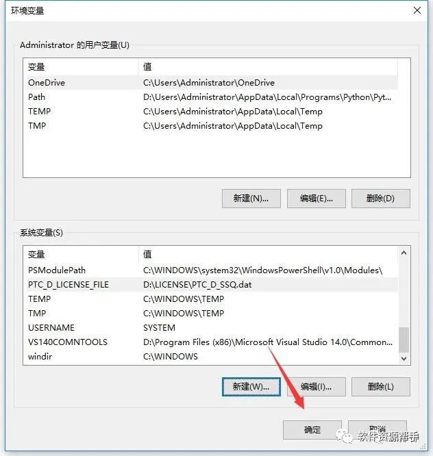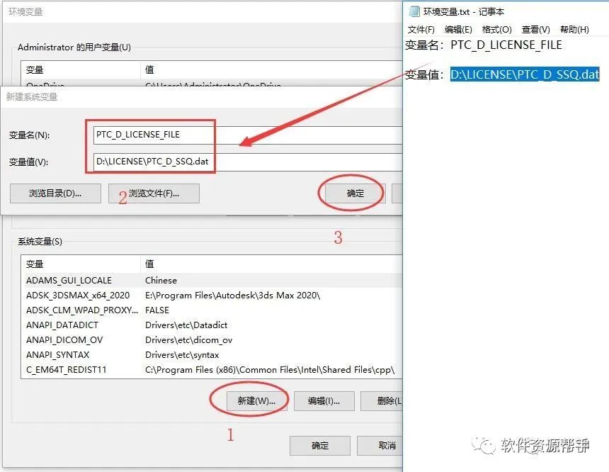 8.返回License文件夹,打开环境变量记事本,点击新建,将对应的信息复制到图示框内,点击确定