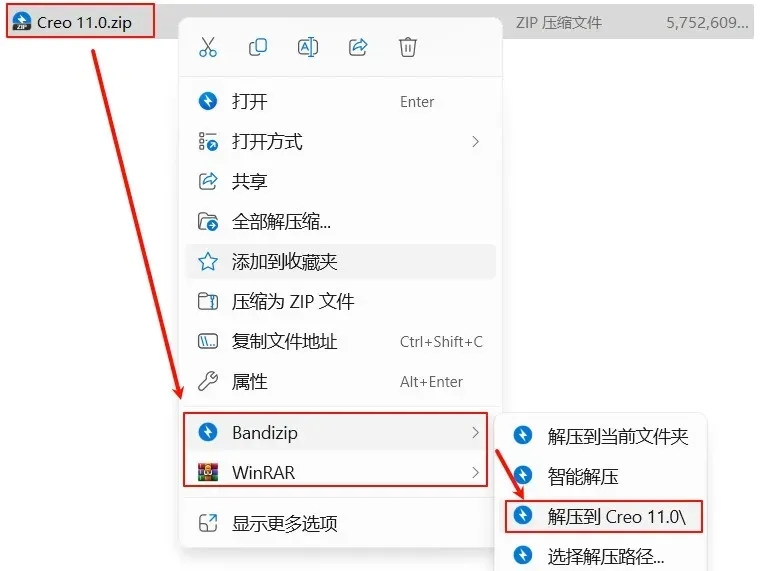 1.选中下载好的安装包,右键选择解压到"Creo 11.0"文件夹