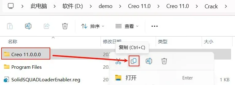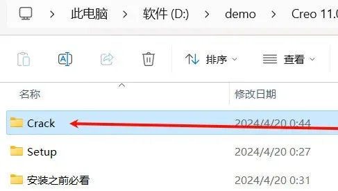 21.回到安装包里复制"Creo 11.0.0.0"文件