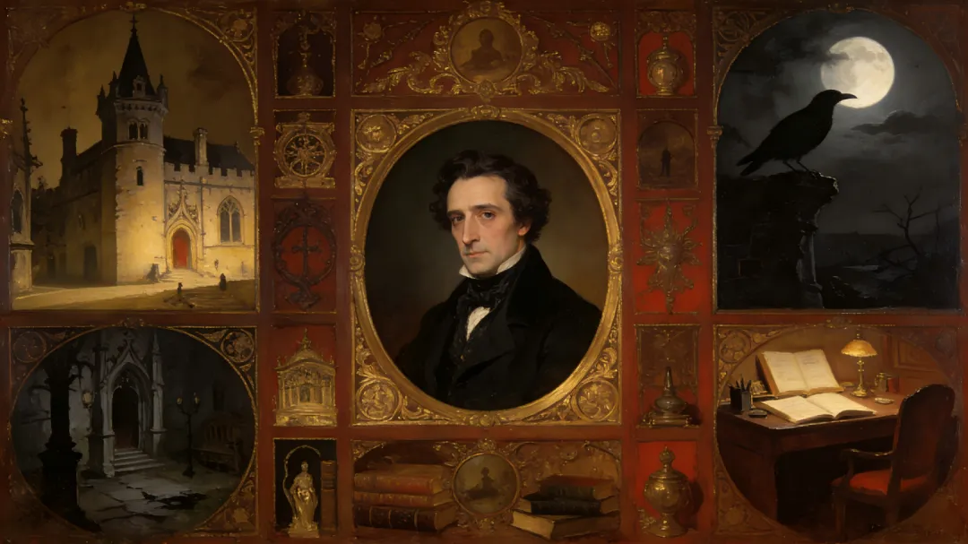 埃德加·爱伦·坡(Edgar Allan Poe)(1809-1849)被公认为19世纪美国文学的奠基人。作为美国文学的先驱,其作品深刻影响了现代文学与社会思想。开创了侦探小说流派,以《莫格街凶杀案》中的逻辑推理模式为后世奠定基础,启发了柯南·道尔等作家,重塑了犯罪叙事的文化逻辑。在恐怖文学领域,他将哥特传统转向心理深度,通过《厄舍府的倒塌》《黑猫》等作品剖析疯狂、道德堕落与死亡焦虑,映射19世纪美国社会的深层矛盾:工业革命加速下的城市化孤独、精神疾病污名化及社会异化。其诗歌《乌鸦》以象征手法探讨哀伤与虚无,成为现代诗歌的里程碑。倡导“效果论”,强调文学应创造强烈情感冲击,推动短篇小说从娱乐向艺术升华,使文学成为社会诊断的工具。挑战了维多利亚时代的道德框架,鼓励公众正视人性黑暗面,为现代心理学与社会批判埋下伏笔。不仅定义了恐怖与侦探类型,更持续激发对现代社会问题的反思,如心理健康、城市疏离与道德模糊性,至今仍具现实启示意义。作为"侦探小说的鼻祖",他开创了推理文学流派,代表作《莫格街凶杀案》确立了逻辑推理模式,影响了柯南·道尔等后世作家;被誉为"恐怖小说大师",与安布鲁斯·布尔斯、H.P.洛夫克拉夫特并称美国三大恐怖小说家,其作品《黑猫》《厄舍府的倒塌》开创了"心灵式恐怖";同时,他也是"科幻小说的先驱",《热气球骗局》等作品影响了凡尔纳等科幻作家。