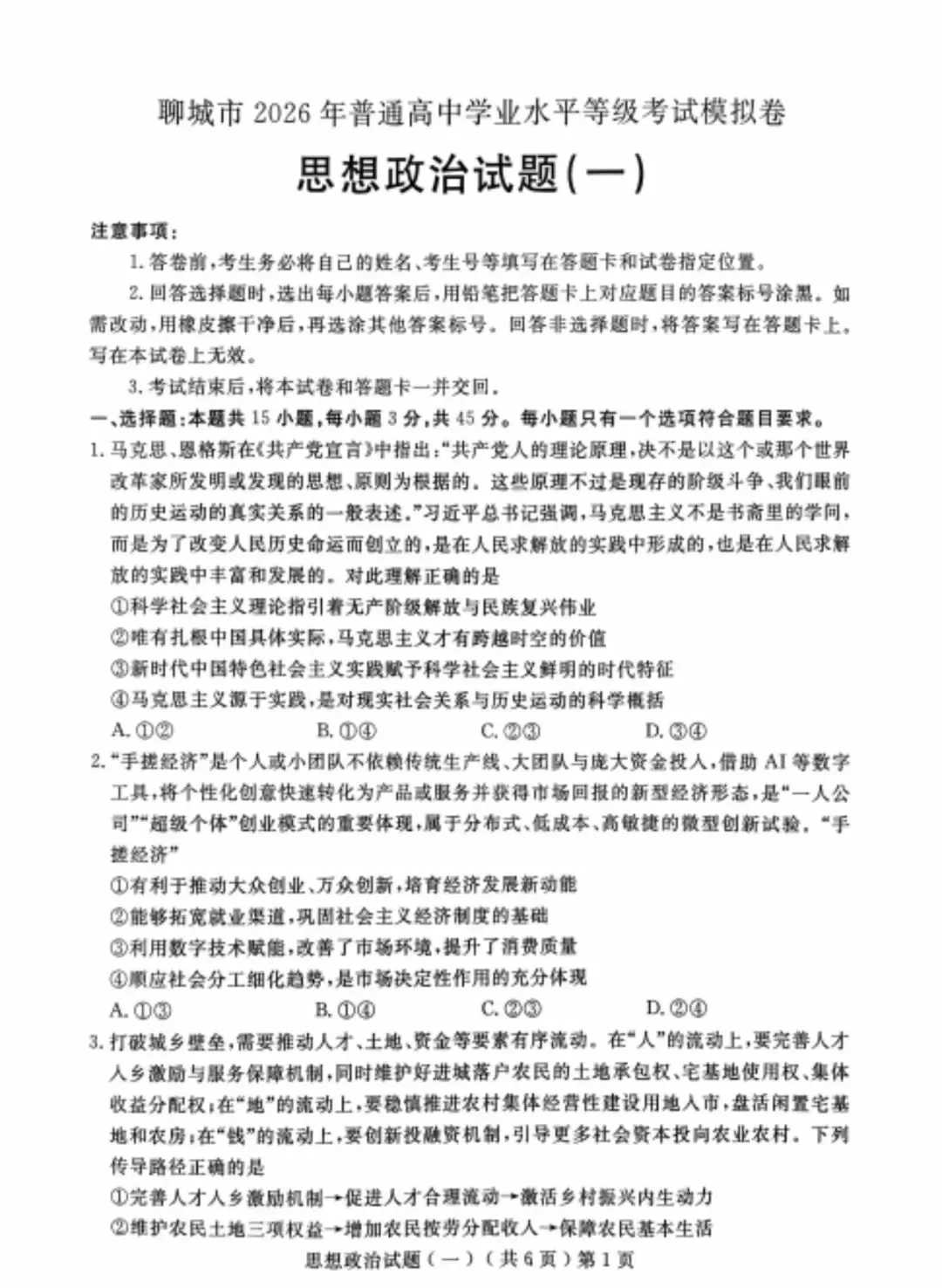 🙅【2026年山东各地市高三一模真题答案】PDF可打印版领取方式如下: