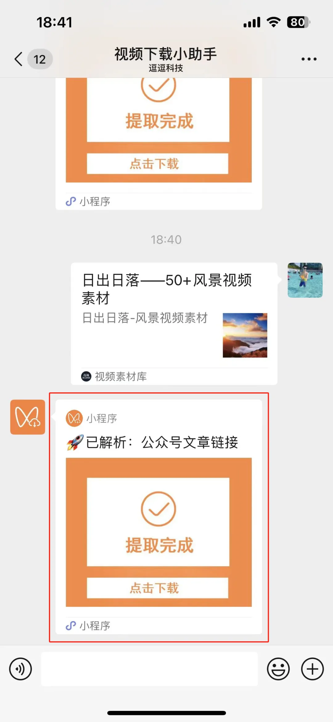 第三步,小助手把公众号的视频全部提取,并回复下载地址