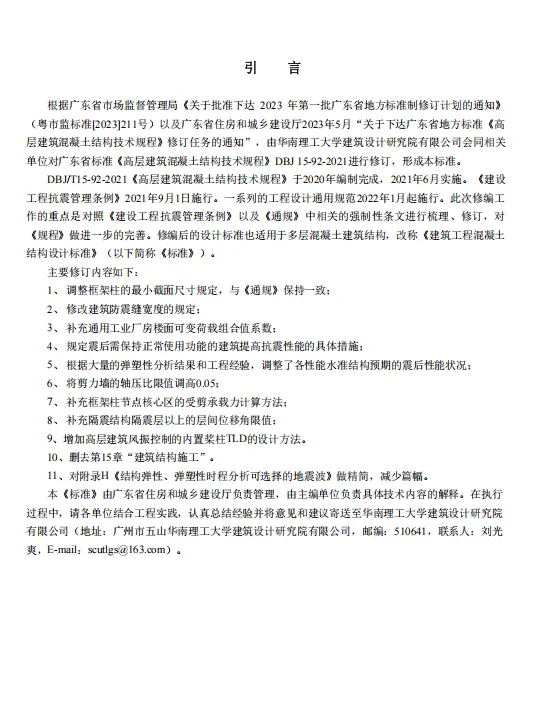 - 实施时间:2025年9月26日,原《高层建筑混凝土结构技术规程》DBJ/T 15-92-2021同时废止。