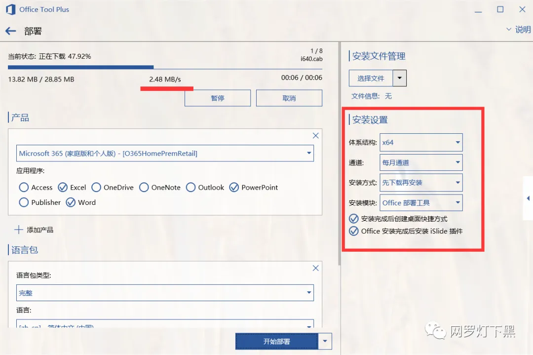 安装方式我推荐选择先下载后安装,OTP 会将 Office 安装包先下载到本地,这样下次再安装的时候就可以离线本地安装,不需再从服务器下载。