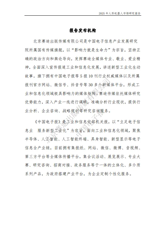 3月4日,北京赛迪出版传媒有限公司和中国电子报联合发布了《2025年人形机器人市场研究报告》(以下简称《报告》)。《报告》对2025年人形机器人产业发展情况、市场格局和重点企业进行了分析,并对产业未来趋势进行了展望。