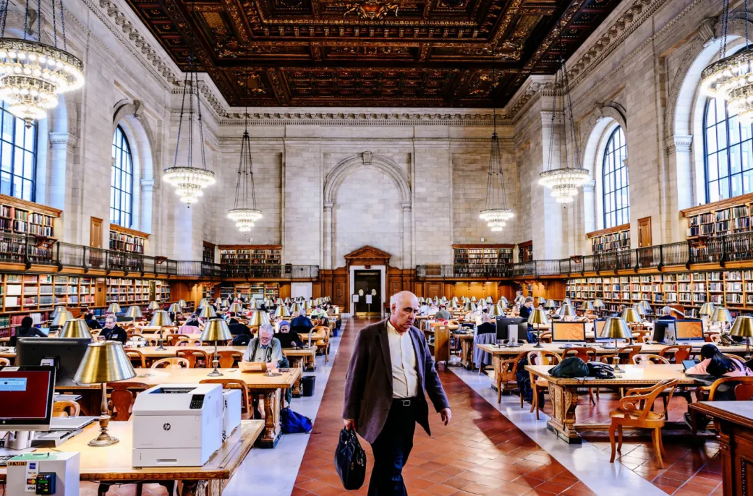 纽约公共图书馆。目前,因应新冠疫情而关闭,这是闭馆前几日的玫瑰阅览室。