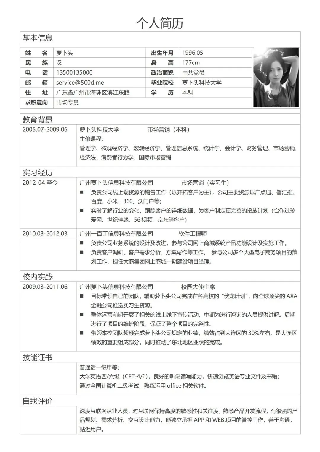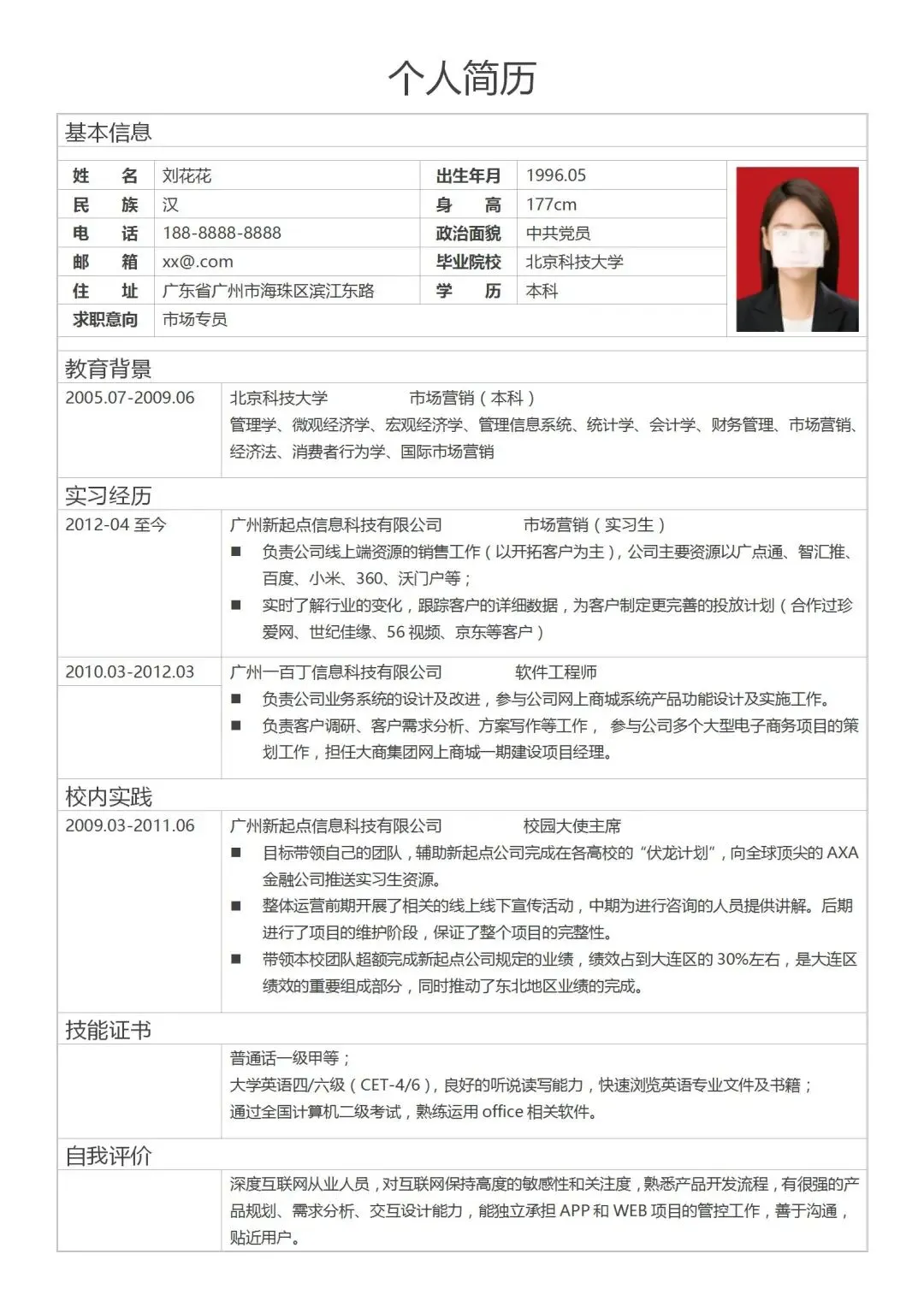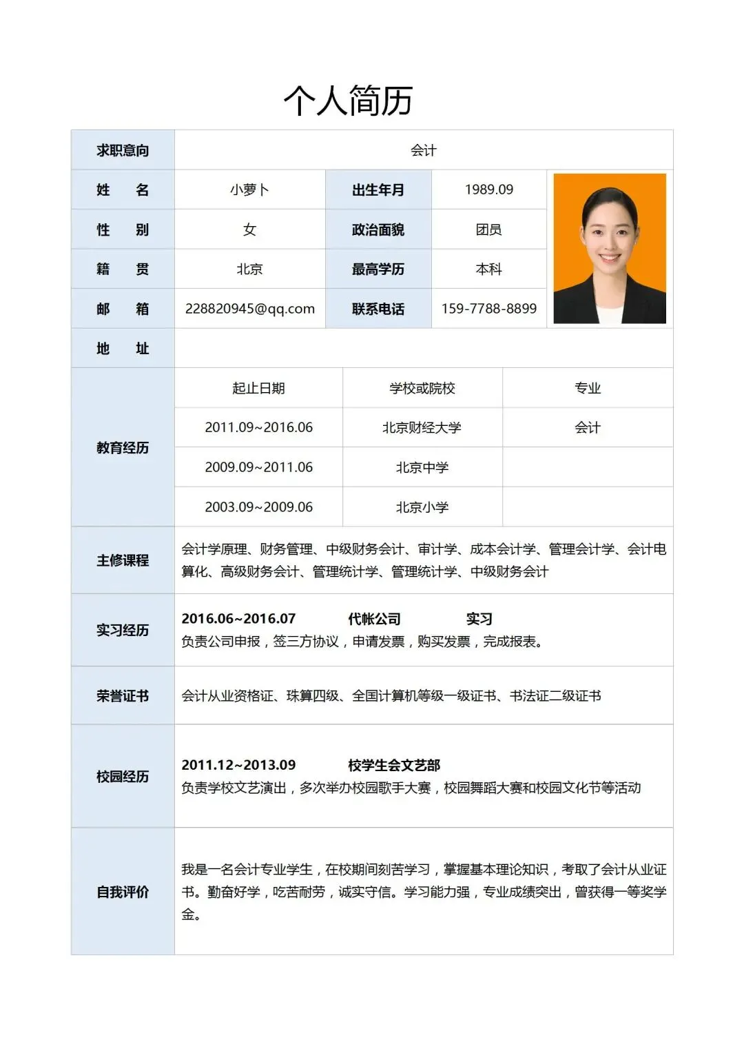 本文分享的是:【简易版个人简历】