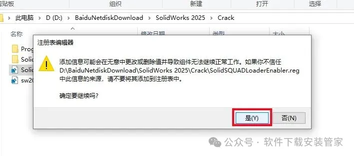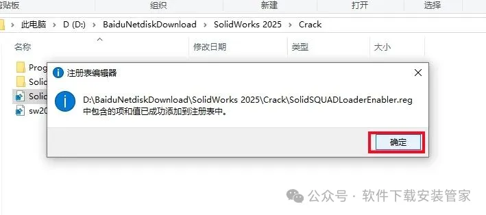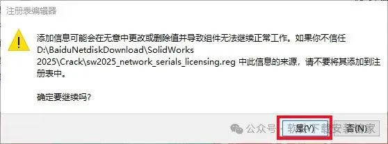 3.打开【sw2025_network_serials_licensing】注册表文件。
