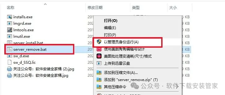 9.鼠标右击【server_remove】程序,选择【以管理员身份运行】。