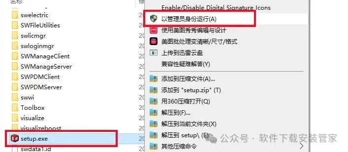 14.鼠标右击【setup】安装程序,选择【以管理员身份运行】。