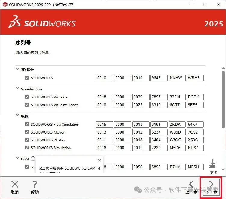 17.这里序列号会自动填写,直接选择【下一步】。