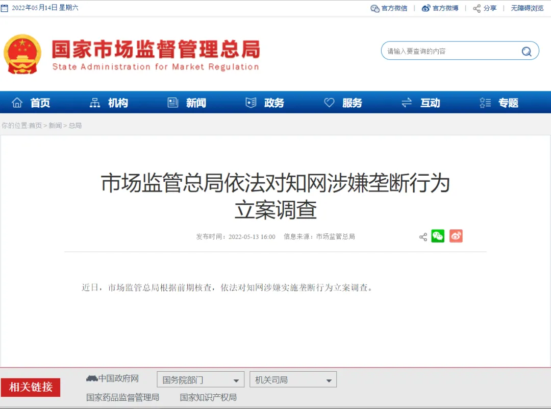 昨天下午4点,国家市场监管总局在其官网宣布对知网涉嫌实施垄断行为立案调查!40分钟后,知网在其官方微信号宣布:将会全力配合调查。
